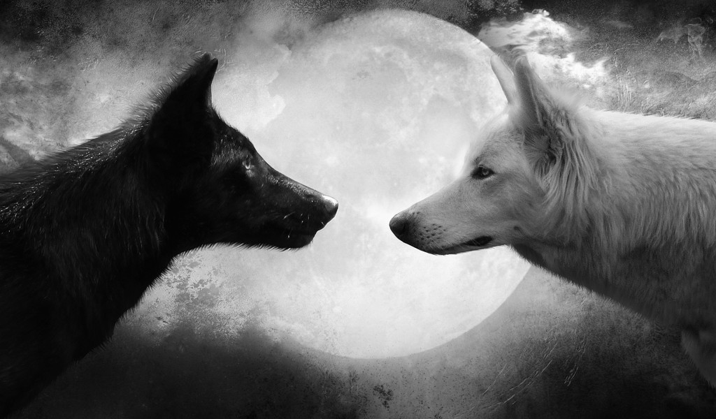 Black White Wolves Wallpaper 203 - 1024x600