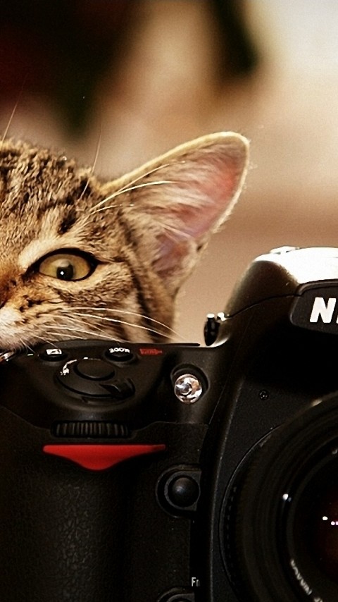 Cat and Camera Wallpaper 206 - 480x854