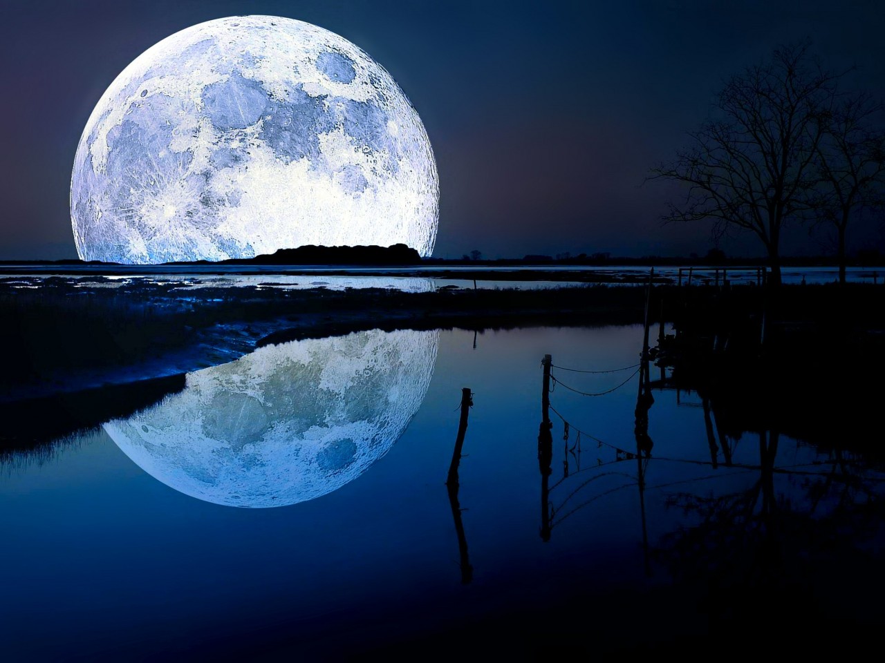 Lake Moon Night Wallpaper 704 - 1280x960