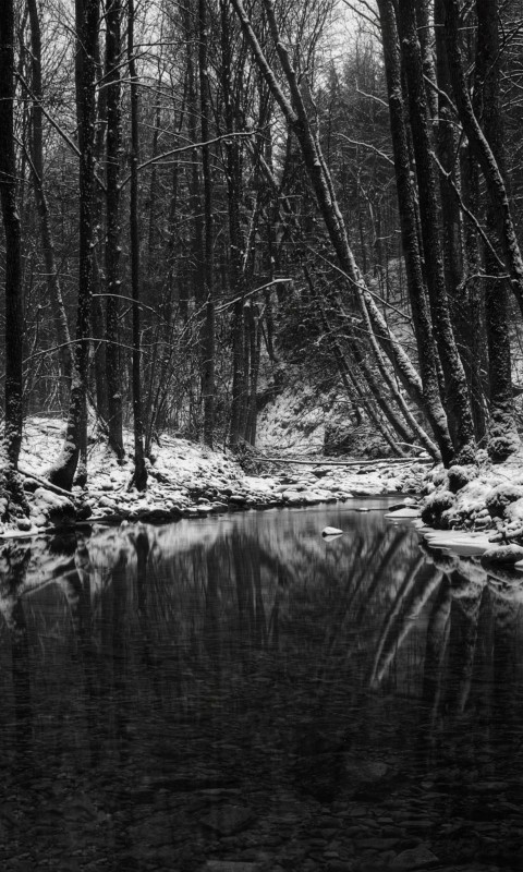 River Snow Trees Wallpaper 934 - 480x800