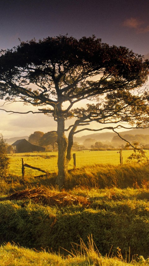 Tree Pasture Sunrise Wallpaper 744 - 480x854