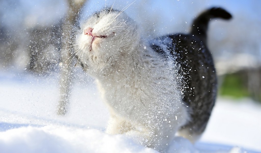 Winter Cat Snow Wallpaper 069 - 1024x600